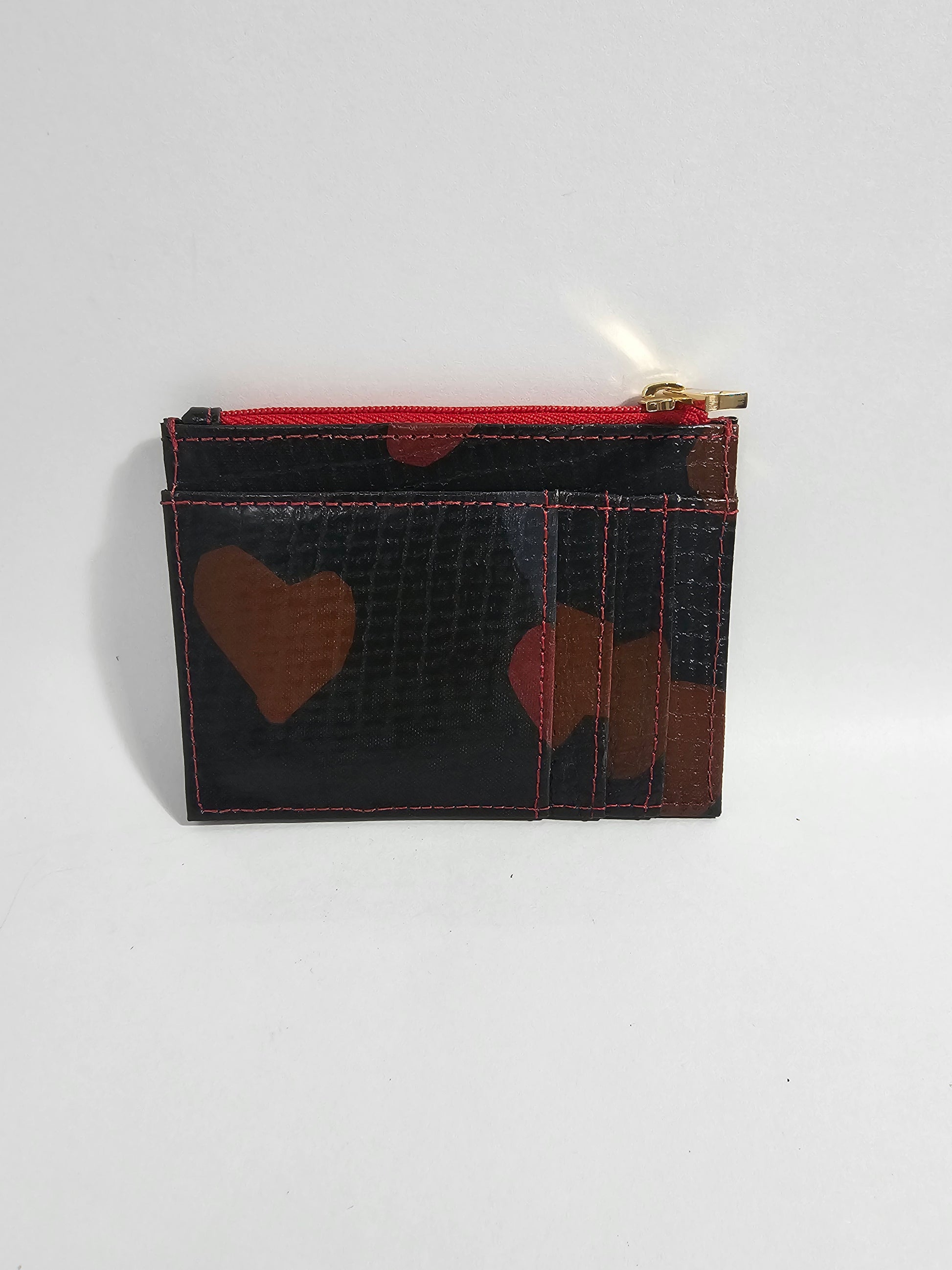 Cada tarjetero nace de bolsas de plástico recuperadas y transformadas en un material resistente mediante técnicas artesanales. Aunque manejamos referencias, no hay dos iguales. Es una declaración de estilo con propósito: menos residuos, más diseño.